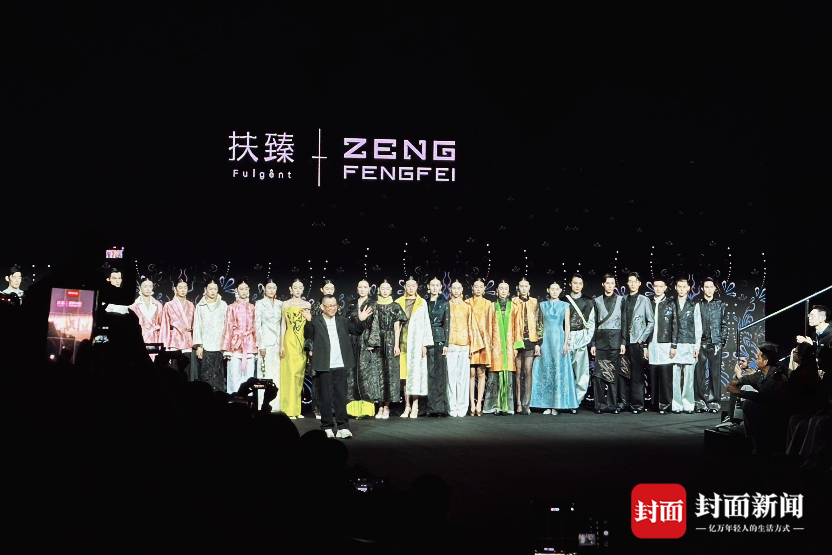 活动现场展出的蜀锦成衣系列,由设计师曾凤飞和协同创新中心打造的扶臻品牌联袂呈现。系列蜀锦成衣设计将蜀地代表性文化符号太阳神鸟、木芙蓉、熊猫、都江堰水纹、川剧脸谱等转化为可穿戴的视觉语言,在延续蜀锦传统织造技艺的同时,创新融入现代时尚元素,让古蜀文明在当代T台上焕发新生。