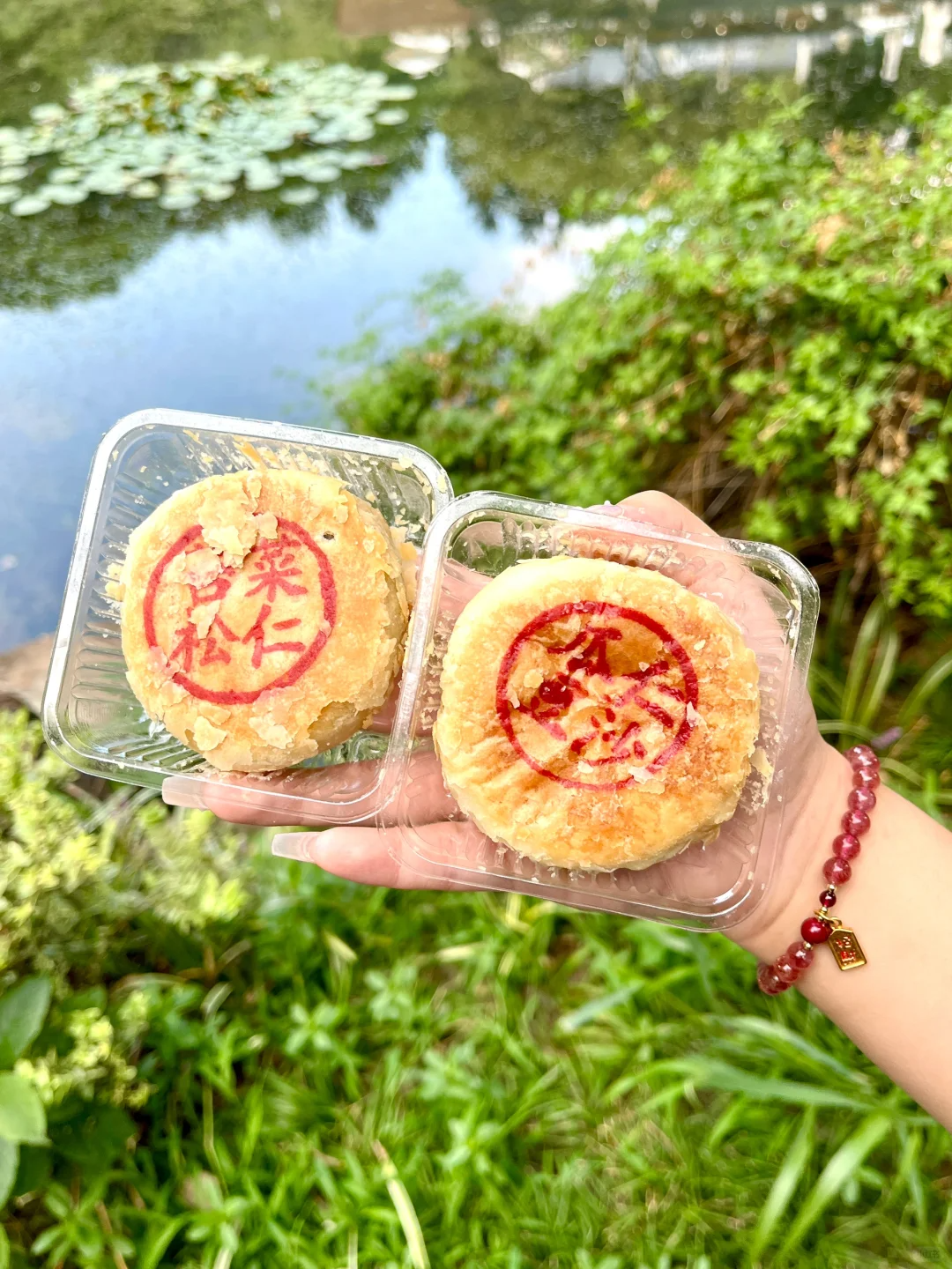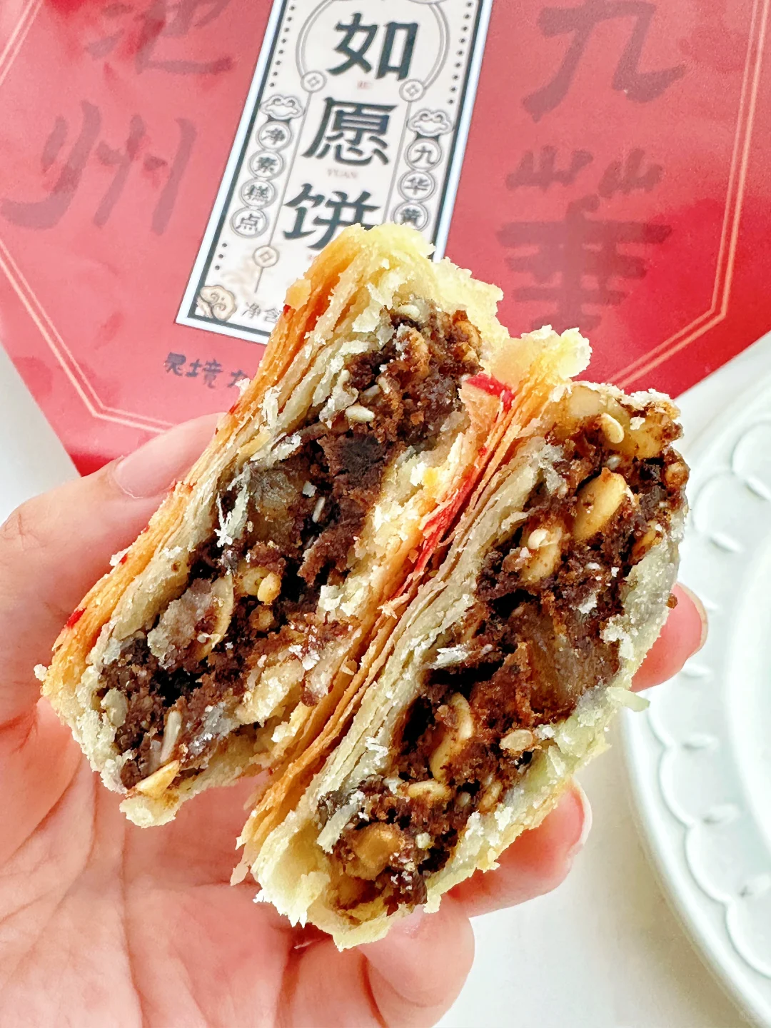 到了九华山,必吃九华素饼,这种饼是用九华山上的素食、黄精和绿豆粉制作而成。