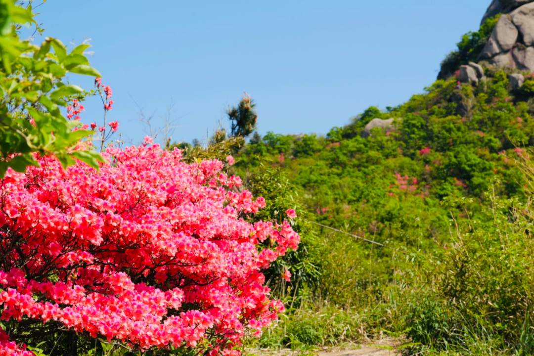 爬上山,你能看到高山杜鹃,种类繁多。映山红、紫杜鹃、粉杜鹃,分布在各处,大片花海在山间跃动。