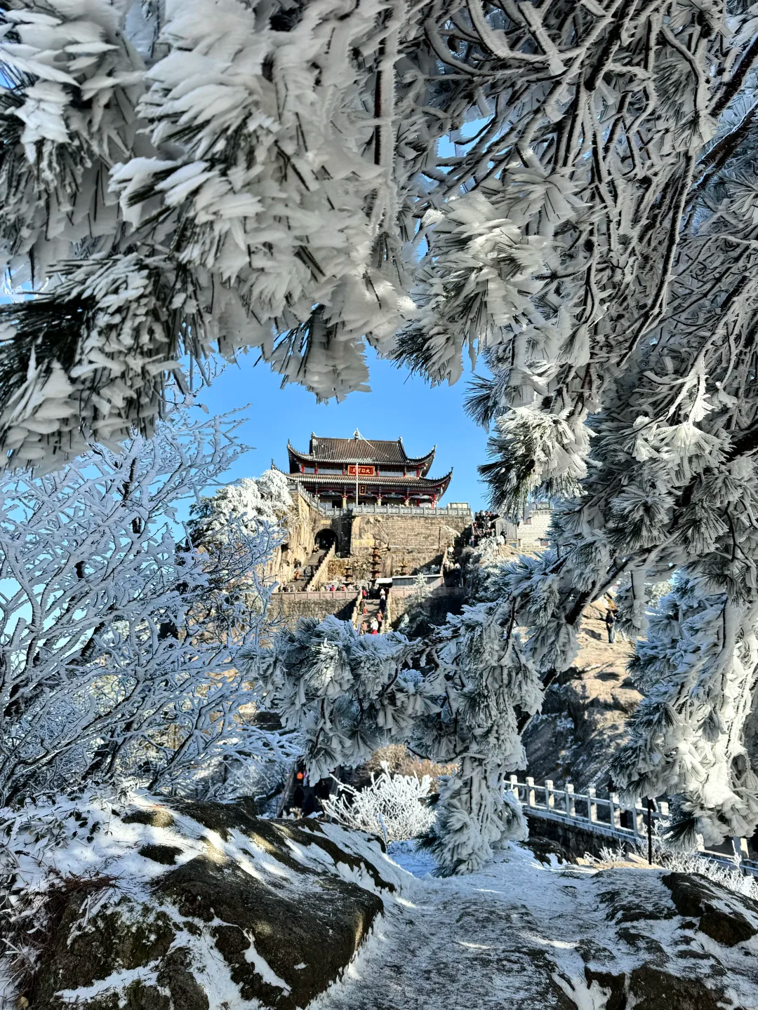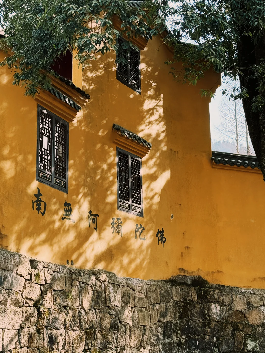 秋日佛寺在金黄树林中掩映看到就想举起相机,冬日还有雾凇、冰挂、云海、佛光奇妙景致。