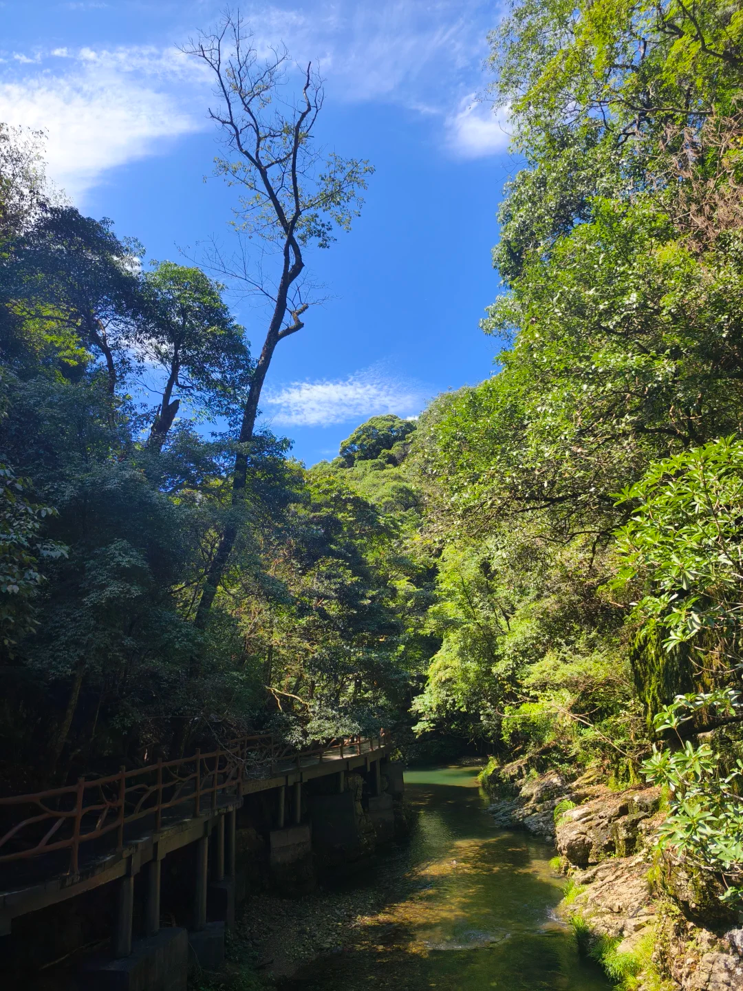 这里拥有华东最后的原始森林,像是山的博物馆。牯牛降的溪水倒映着原始森林的翠绿,美到了机制。